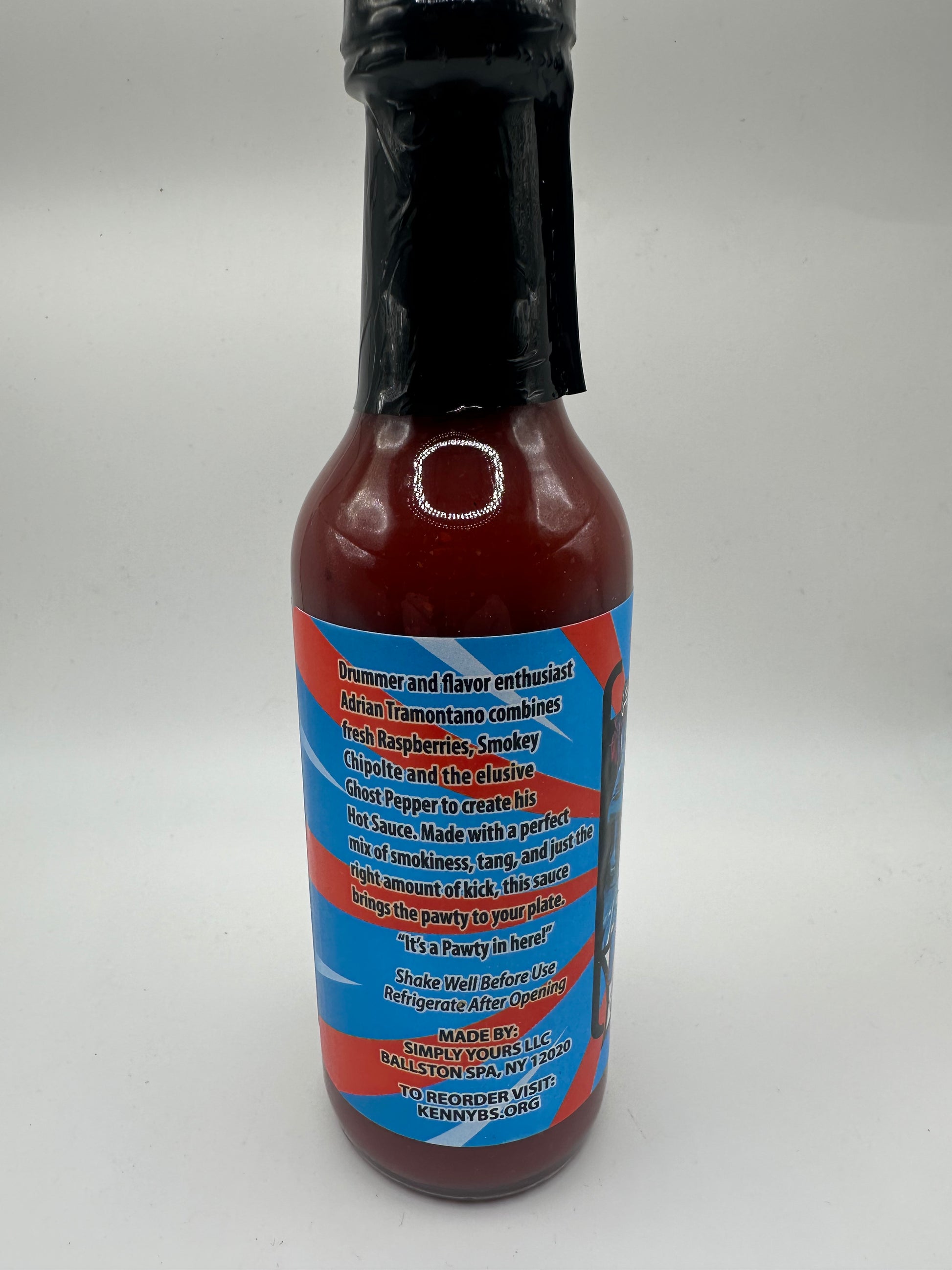 Drummer and flavor enthusiast Adrian Tramontano combines fresh Raspberries, Smokey Chipotle and the elusive Ghost Pepper to create his Hot Sauce. Made with perfect mix of smokiness, tang, and just the right amount of kick, this sauce brings the pawty to your plate!!! "It's a Pawty in here!"